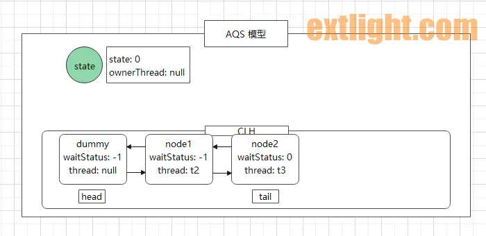 经过上述的操作,此时 AQS 模型图为: