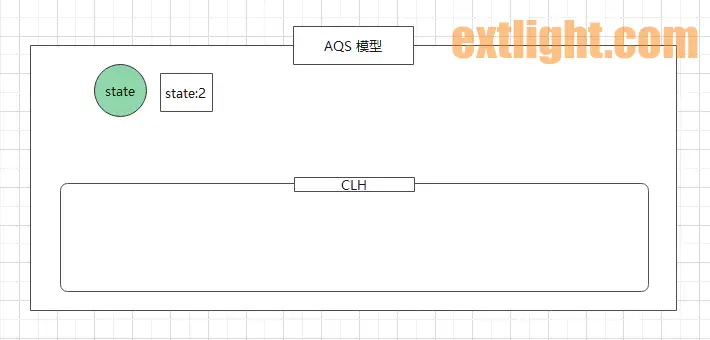 图中 permit 的数量值由 state 保存维护,等待的线程则被封装成 Node 节点放在 CLH 队列中挂起等待。