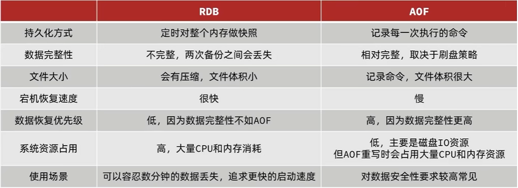 RDB 和 AOF 各有优劣,如果对数据安全不是很高,我们只需要开启 RDB 即可,如果对数据安全性要求较高,建议开启 AOF。在实际开发中往往会结合两者来使用,我们可以同时开启 RDB 和 AOF,当两者同时开启时,AOF 的优先级较高。那可能有同学会说,既然 AOF 的优先级较高,且保存数据较为完整,那是否只需要开启 AOF 就可以了呢?